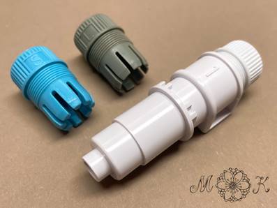 werden die Stifte in den Stiftadapter (blau) eingesetzt.