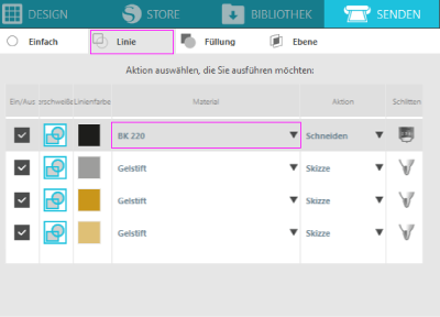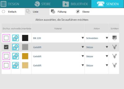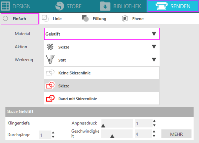 Man kann zum Zeichnen die Original Silhouette Stifte (sketch pens) verwenden. Bei den