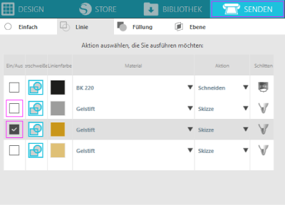 deaktiviere ich die eben abgearbeitete Linienfarbe im SENDEN-Dialog,
