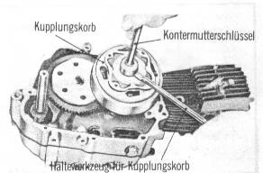 aufbiegen. Kontermutter mit dem Kupplungskorbhalter und dem