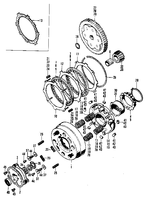 41,42, 43 bei höheren Drehzahlen in den Kupplungskorb